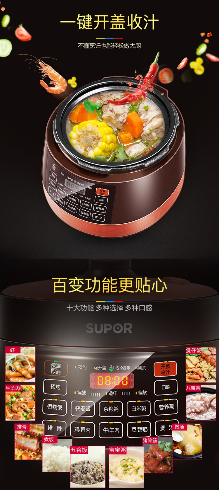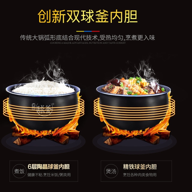 2017智能新品发布,创新双球釜内胆,传统大锅弧形底结合现代技术,受热均匀,汤浓饭香,烹煮更入味。升级触摸屏,操作更便捷,有效防水,经久耐用,外形科技感十足。多功能烹煮选择,做自己的大厨。