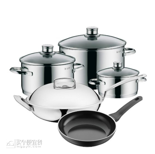 小编推荐的这款套装包括28cm中华炒锅、20cm不粘煎锅、汤锅16cm、汤锅20cm、汤锅24cm。其中最贵的的是WMF不锈钢中华炒锅,昵称完美福,直径为28cm,深度9cm,重2.9kg。强迫症民族专为中国人设计,使用cromargan 18/10专利注册不锈钢,旋转式开关设计锅盖,人体工程学设计手柄呈45°上扬角度。