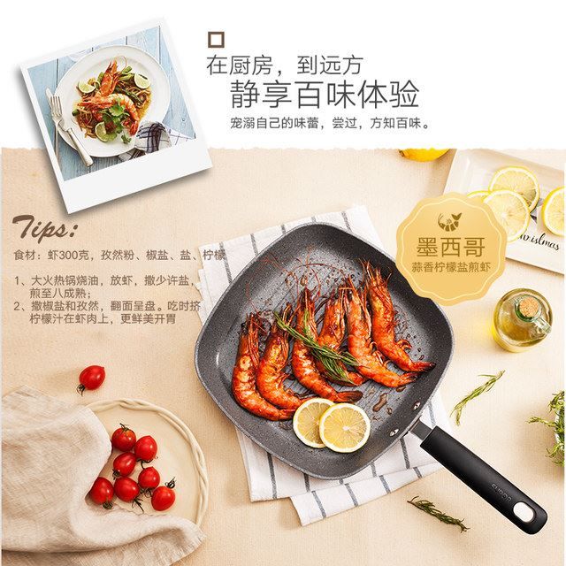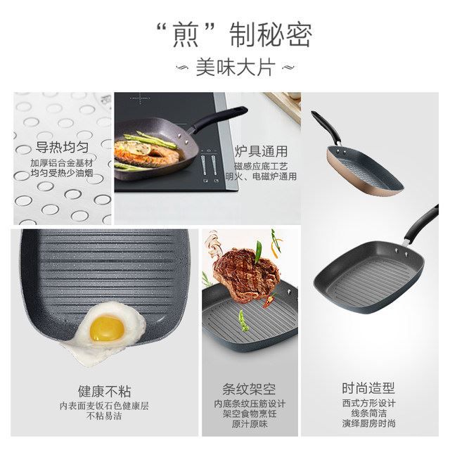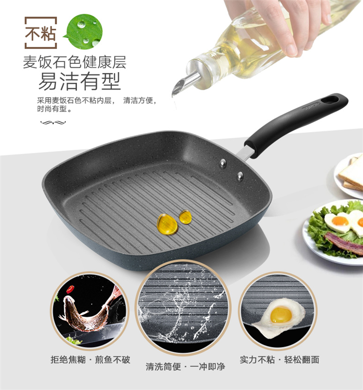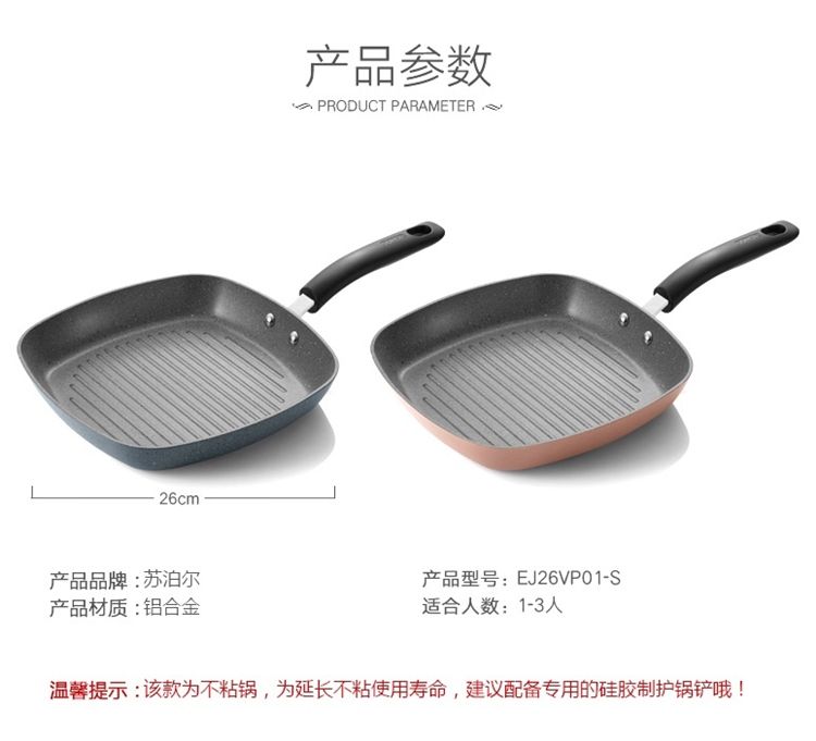 天猫supor苏泊尔相宾久专卖店159元,可用80元券,实付79元包邮,同款京东159元。这款苏泊尔煎锅,正方形盘,锅身直径26cm,整体是铝合金材质,导热快;内表面麦饭石色健康不粘层,不粘锅,少油烟,易清洁;内底条纹压筋设计,架空食物烹饪,热量分布均匀,保证口味。蜂巢式节能复合锅底,炉灶和电磁炉均可使用,无锅盖。