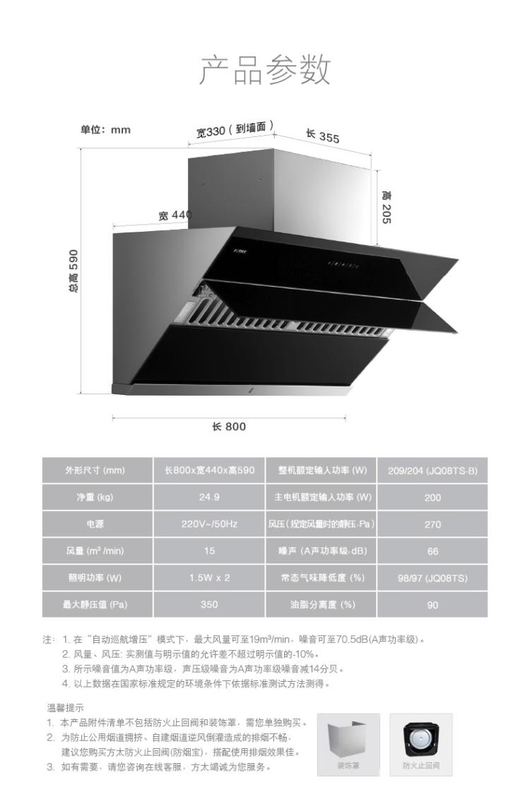抽油烟机的型号是JQ08TS,属于侧吸式油烟机