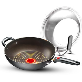 SUPOR/苏泊尔 EC32RP03 采用铝合金打造,钛晶钢不粘材料,精密压制,一体成型,易清洁,无油烟、持久不粘效果好。火红点设计,加热过程中,当火红点两种深浅不同的红色变成一种颜色时,表示温度达到可烹饪的温度,可避免油温过高而产生有害物质,更加健康。此款炒锅加高锅深设计,锅底厚,锅壁薄,传热速度快;可立锅盖,节省空间,煎煮炖炒都可胜任;规格:内口径32cm,锅深9cm,手柄长20cm。