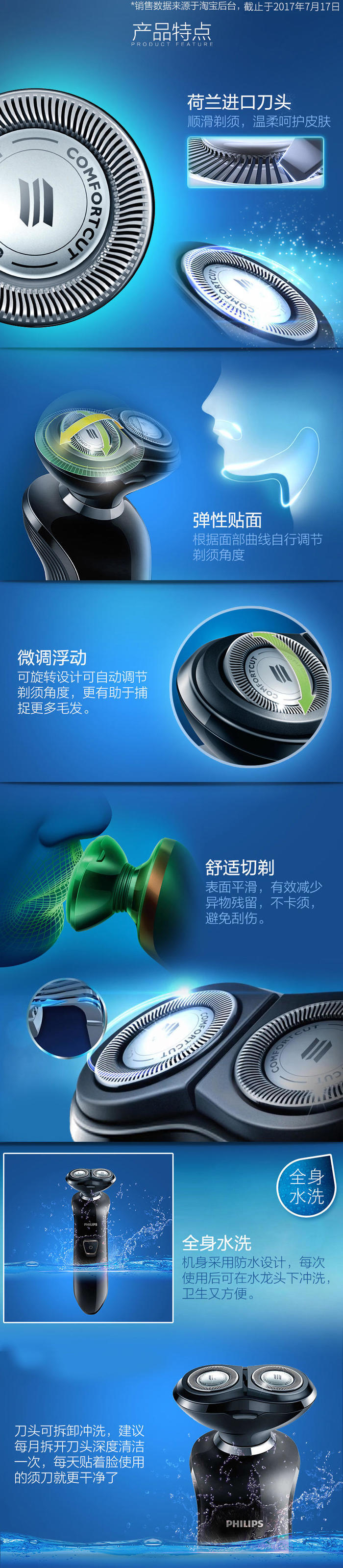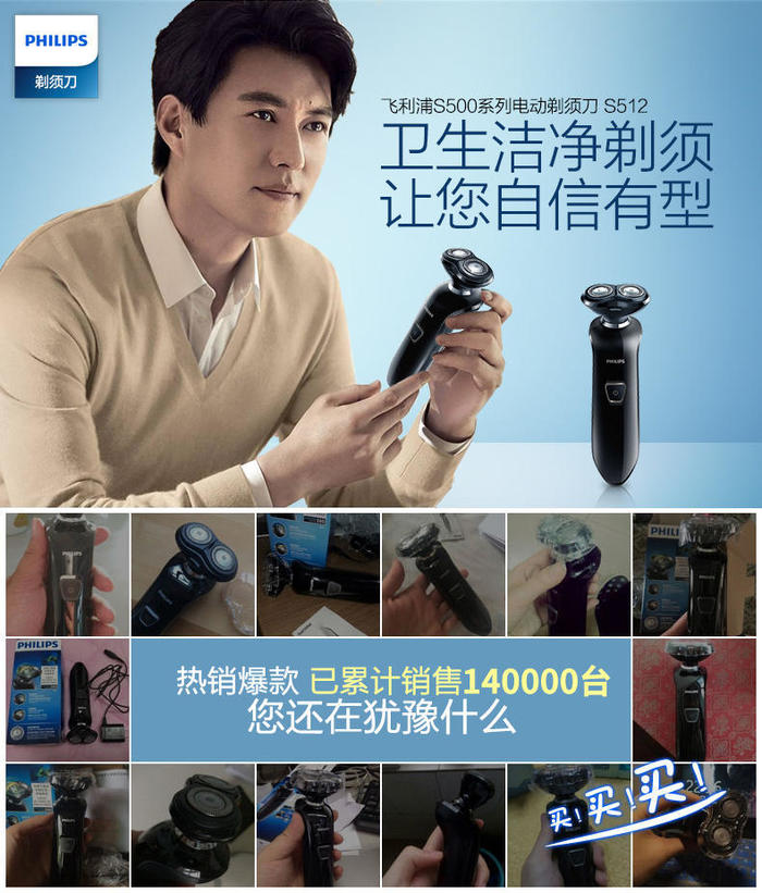 弹性贴面,可全身水洗!飞利浦电动剃须刀S512,原价429元,目前天猫双12特价199元包邮,价格不错,同款京东298元,国美259元,1号店279元。