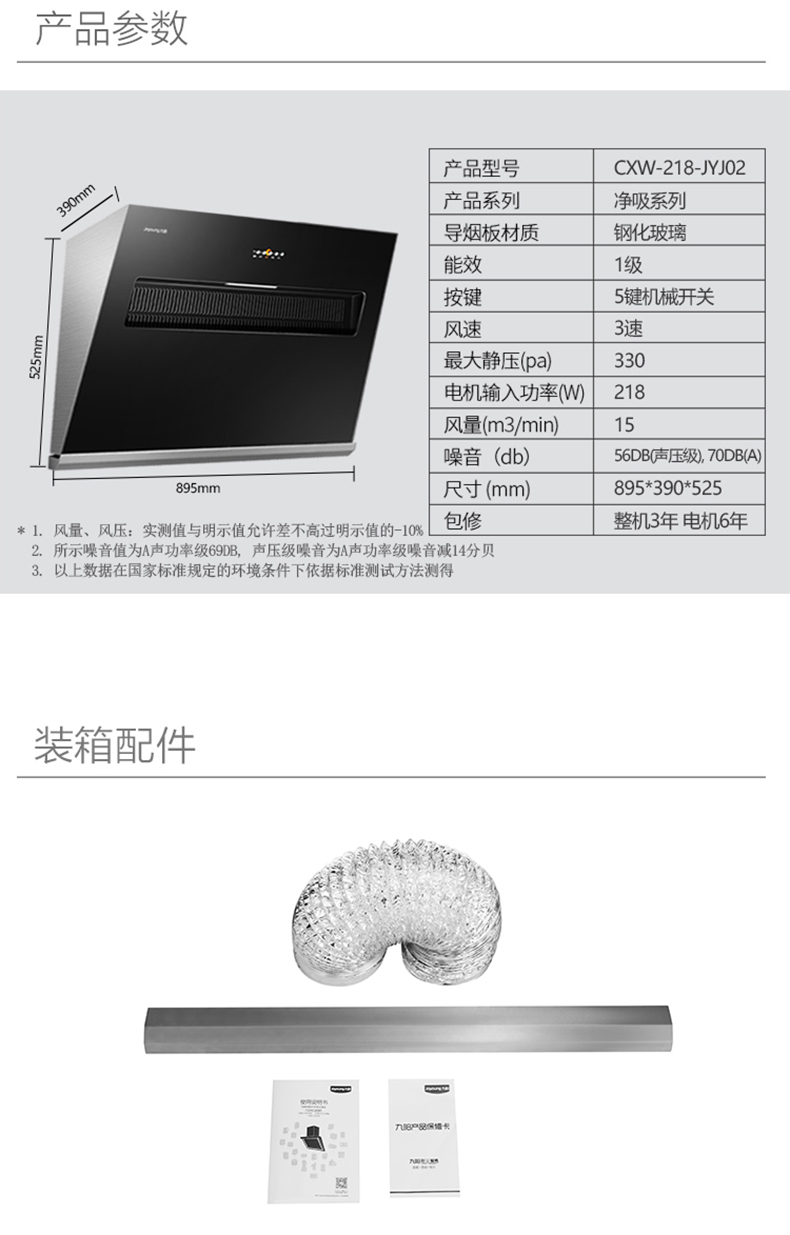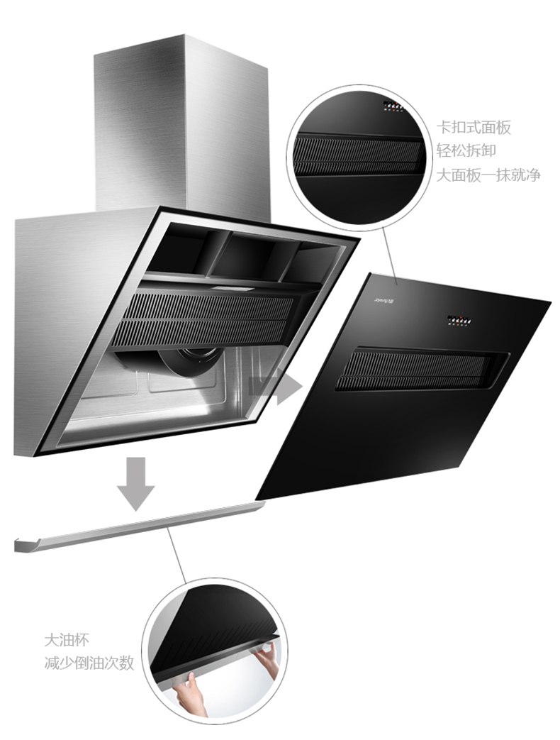 九阳 2017新款 CXW-218-J02 抽油烟机,天猫授权店铺售价¥1299,可领取400元独家券,券后实付¥899! 九阳CXW-218-J02 抽油烟机,采用全面黑晶拉丝工艺,一体面板,无拼接无留缝,决绝藏污纳垢,强劲精铜电机+宽叶片不粘油风轮,高速甩油+不沾油涂层,保护机芯更持久,一键爆炒,瞬间净吸,卡扣式面板,轻松拆卸,3档风速调节,1级能效,环保又节能。