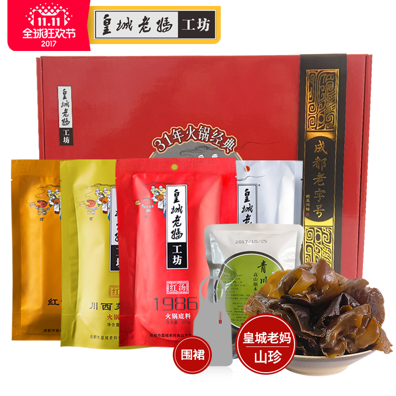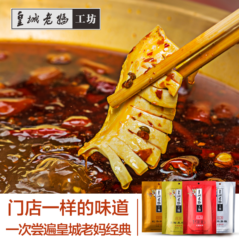 皇城老妈 火锅底料全口味组合200gx4袋,天猫旗舰店售价¥58,可领取20元独家券,券后实付¥38包邮,无辣不欢的宝宝快来买~ 皇城老妈,始于1986年,因为当初的火锅店就坐落在成都古皇城坝,而开店的廖华英又被熟客尊称为“老妈”,于是就有了皇城老妈的字号。先后荣获了“成都市著名商标”、“四川省著名商标”等称号和“成都市名火锅”、“最受消费者喜爱的‘十佳火锅店’”“年度中国餐饮百强企业”等荣誉称号。2004年,“皇城老妈”荣获中国500最具价值品牌,商标价值9.46亿元。同年11月,“皇城老妈”商标荣获“中国驰名商标”。