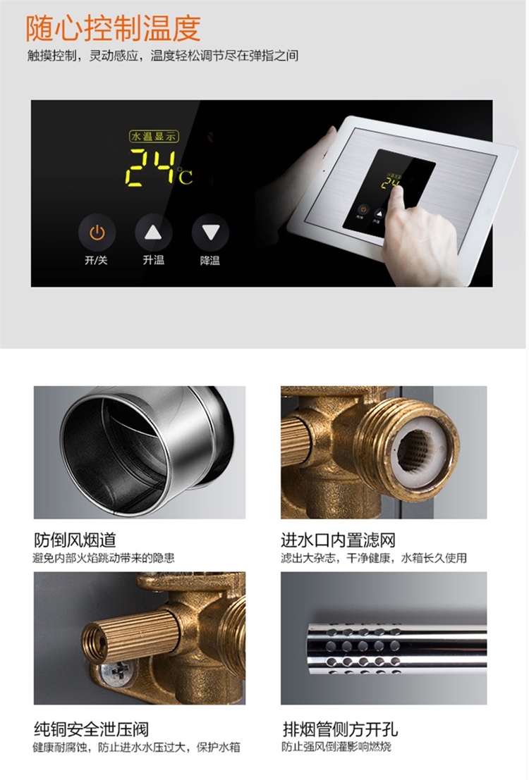 全封闭分段燃烧,安全密封,高热效率,防止热力散失,稳流稳压;直流变频风机,增氧助燃,噪声也很小;有意外熄火保护,过热/干烧保护,风机延时后清扫,断电记忆;烟气经过排烟管排向室外,CO安全。