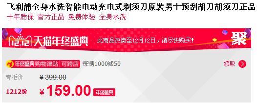 全身水洗,弹性贴面!Philips飞利浦S301剃须刀,原价399元,天猫双12特价159元包邮,价格不错,喜欢的朋友不要错过机会。