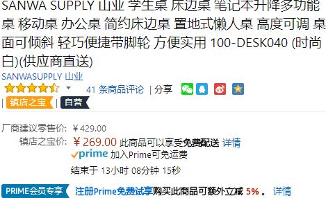 山业笔记本升降多功能桌可升降、可自由移动、可在沙发或床上使用,附带挡板,防止笔记本电脑滑落,边角圆滑,防止磕碰受伤,万向滚轮可随意移动,满足不同场合需求。目前亚马逊Z镇店之宝价269元,领取满199元减30元和银联基础优惠满99元减10元优惠码后下单,实付229元包邮,Prime会员购买此商品可额外立减5%,实付215.55元包邮,近期好价,三色可选。
