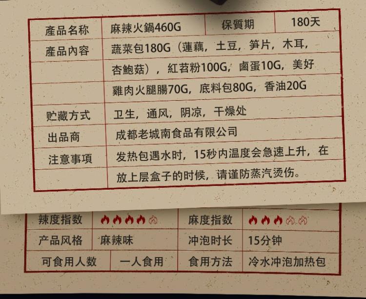 老城南 即食重庆麻辣火锅 自发热懒人小火锅 460g 包邮 19.3元