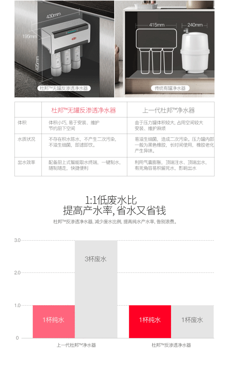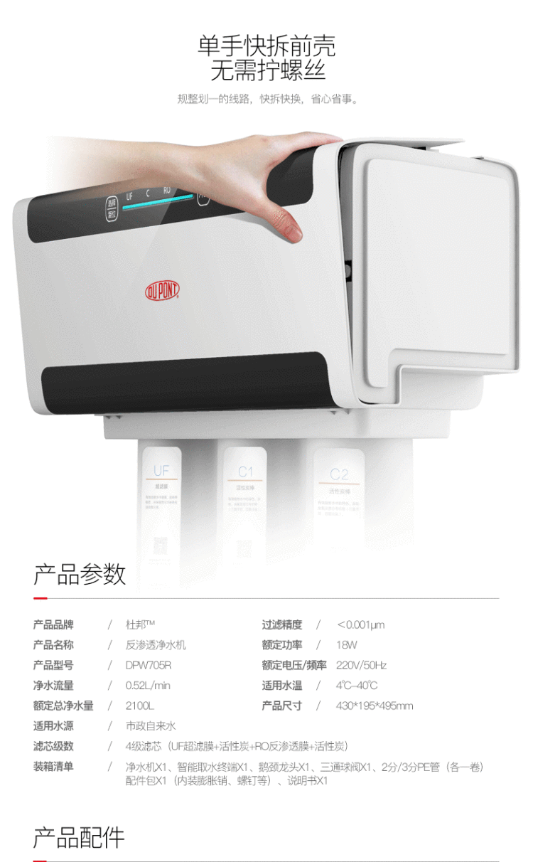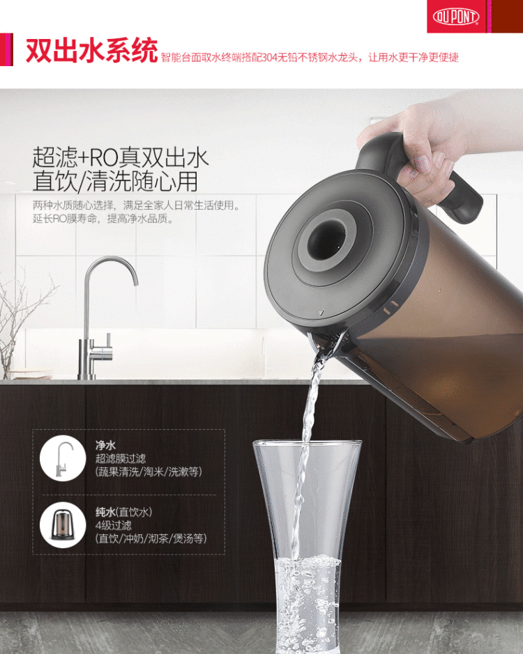 天猫dupont电器旗舰店2299元,可用500元券,实付1799元包顺丰,同款京东券后2399元。下单还赠送1年滤芯和价值99元的电热水壶,做到3年0费用。