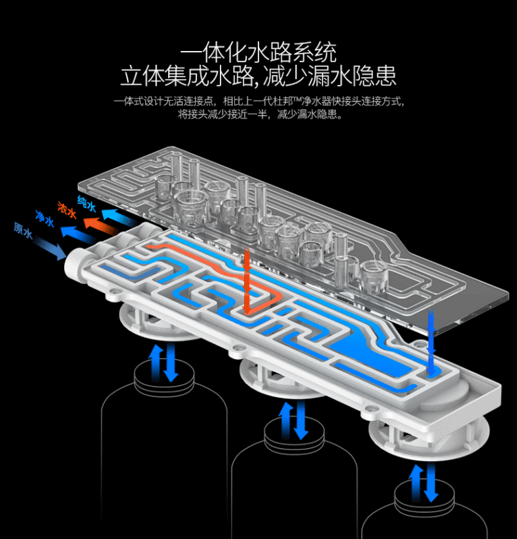 三级过滤:美国原装进口海德能反渗透膜,得益于UF+系统的高精度过滤以及智能反冲洗系统,寿命可达36个月;