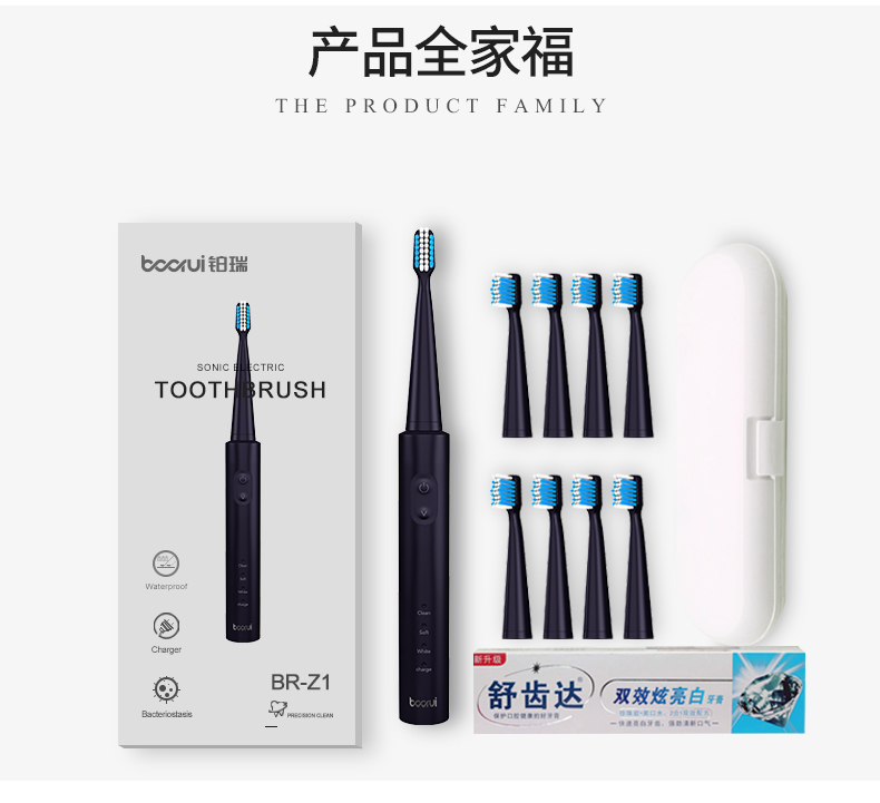 铂瑞 充电式 声波电动牙刷 配4个刷头 包邮 平时110元 29.9元