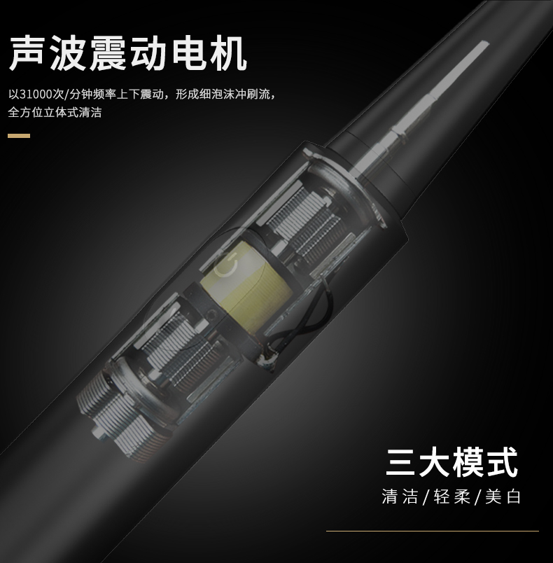 清洁模式,约31000次/分,高频震动产生的流动微气泡,有效清洁顽固牙渍、牙菌斑、牙缝死角;轻柔模式,清洁同时呵护牙釉质,缓解牙龈肿痛,按摩减少牙龈出血;美白模式,约28800-31000次/分就交替震动,有效清洁日常饮食所残留的色素,脉冲式震动,动静结合,显著增加牙齿亮白度。