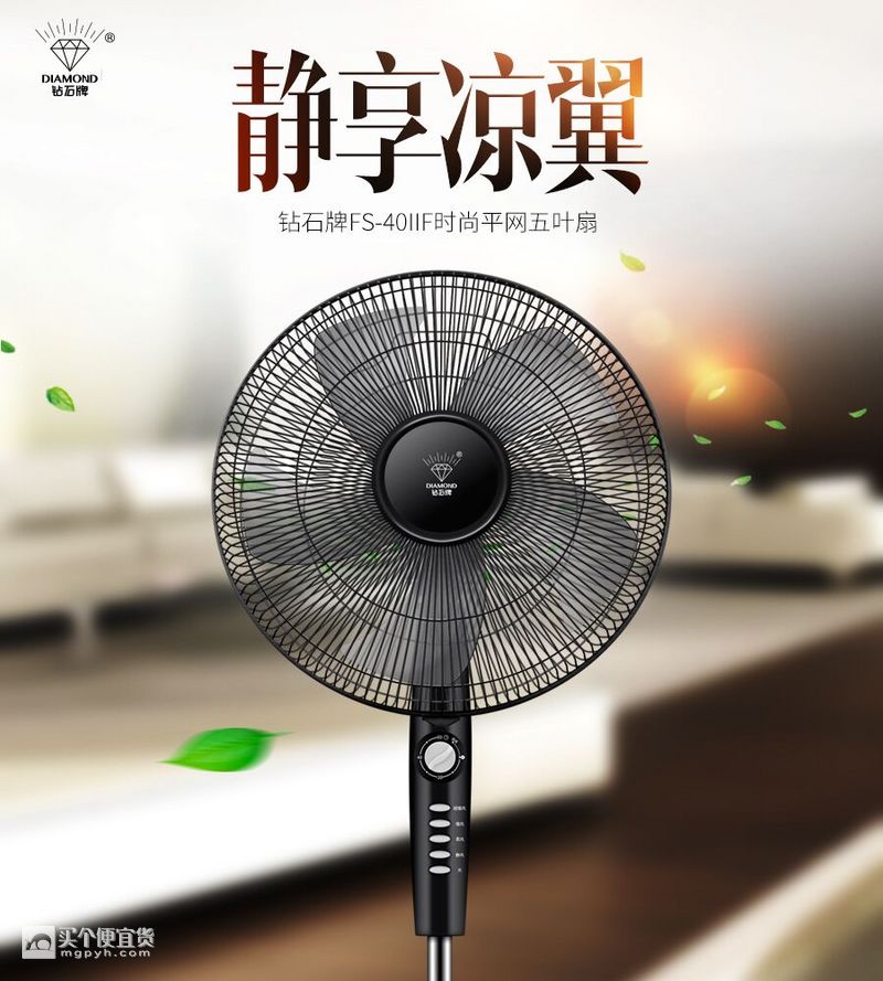 Diamond/钻石 FS-40ⅡF 落地电风扇 ,钻石老品牌,40多年老企业,创新四档调速,让风更舒适,平网设计,时尚安全,5片扇叶,出风量大,伴你清凉一夏。