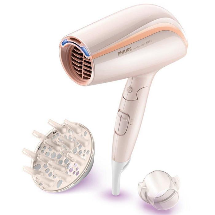 Philips飞利浦BHC202/05电吹风,双负六档可调风速和温度设定;离子出口,带来 2 倍负离子养护;独立的冷风喷出按钮,轻松塑造发型;卷发扩散风嘴可增强卷发效果,打造丰盈卷发;集风嘴可快速吹干头发,轻松造型