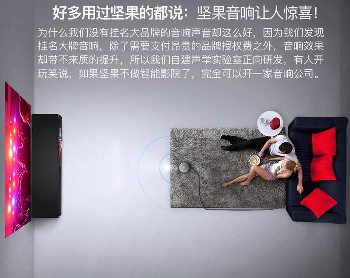可投射300英寸画面,短焦1.2:1投射比,让小户型也能有大屏。在坚果智能影院一直引以为豪的音响方面,雅视C6同样使用了对称式HIFI音响和三频动态调音技术,还原本真音质,匹敌影院级别视听体验。搭载大幅优化的JmGO OS系统,让操作从未如此顺心简单。