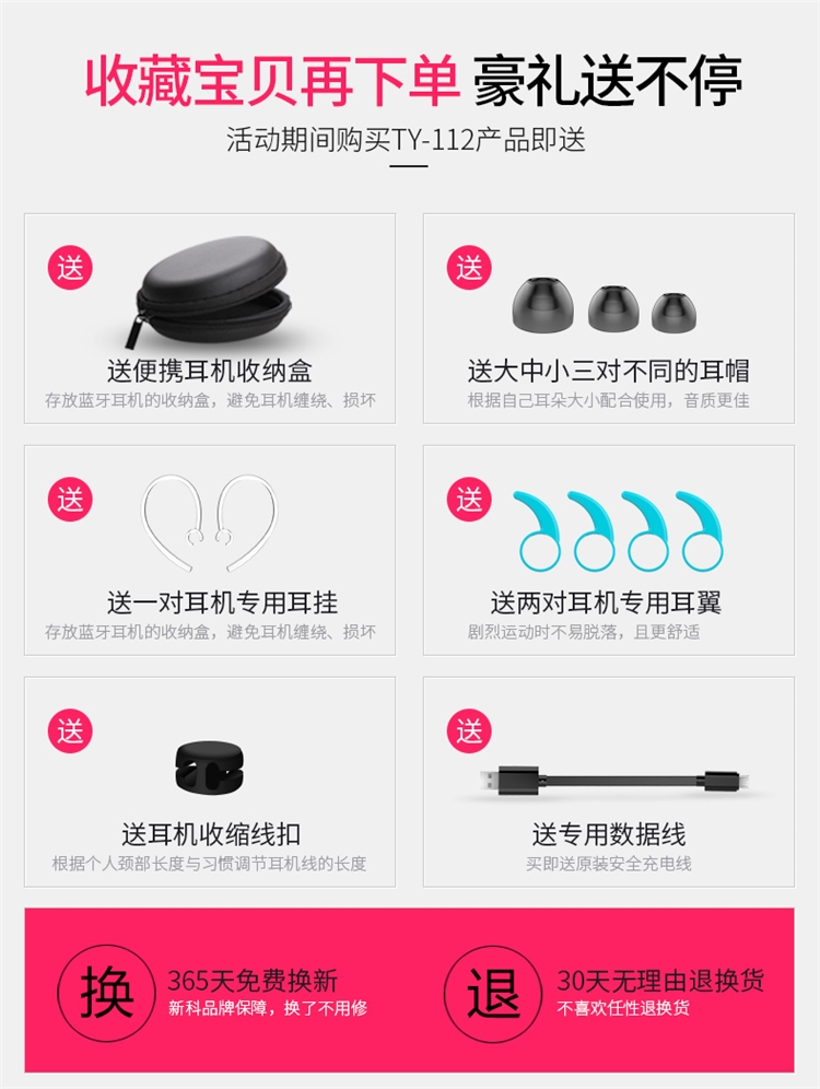 新科 无线蓝牙运动耳机 多色可选 包邮 69.9减20元券后 一堆赠品 49.9元