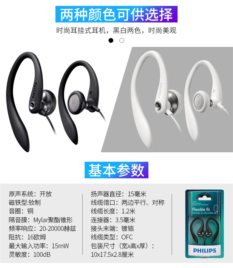 飞利浦 SHS3300 耳挂式 运动耳机 包邮 109减40元券后 同款京东109元 69元