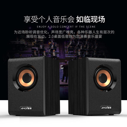 Amoi夏新 A/1迷你木质2.0音响,采用木质低音箱体,更利于降低谐振,保持声音纯正,外表一层磨砂也令音箱更富质感。3W全频响应,高保真单元,呈现优质音效。自带线控,USB轻松供电。