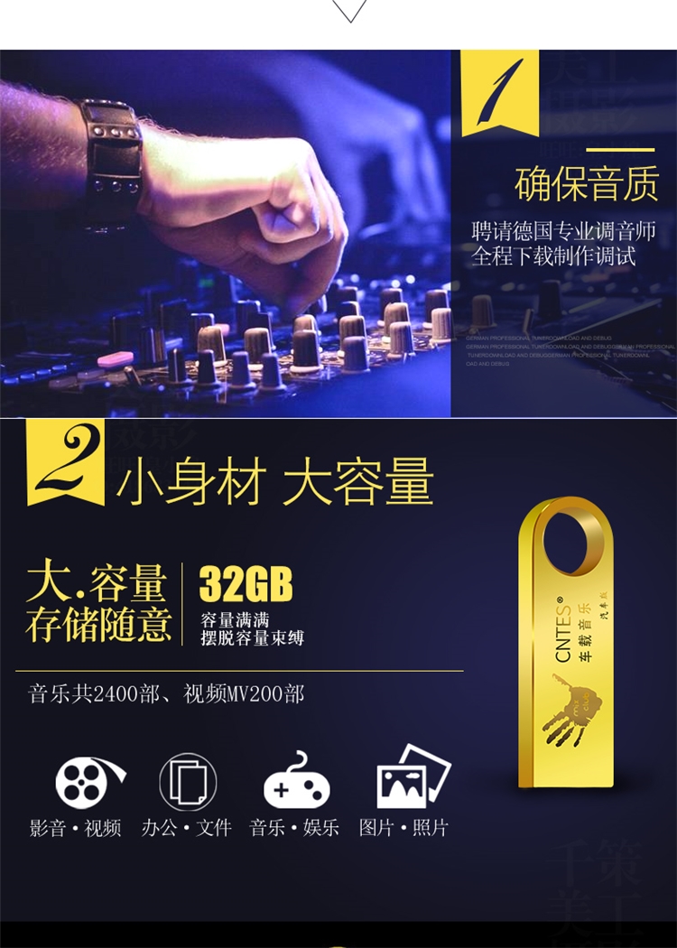 CNTES 车载北京工体CD音乐U盘 16G 包含1300首音乐+140部视频 包邮 之前推荐49元 39元