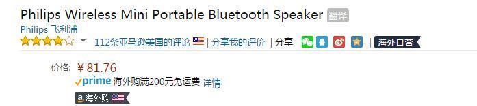 蓝牙连接,可降噪免提!此款Philips 飞利浦 BT100 无线蓝牙音箱,目前亚马逊海外购81.72元(进入Amazon Prime体验计划,点击"立即免费试享30天后"进行开通页面,需要绑定一张信用卡,单币种双币种都行)关税约10元,含税实付到手约92元,非常不错的价格,低价保真,喜欢的朋友不要错过。