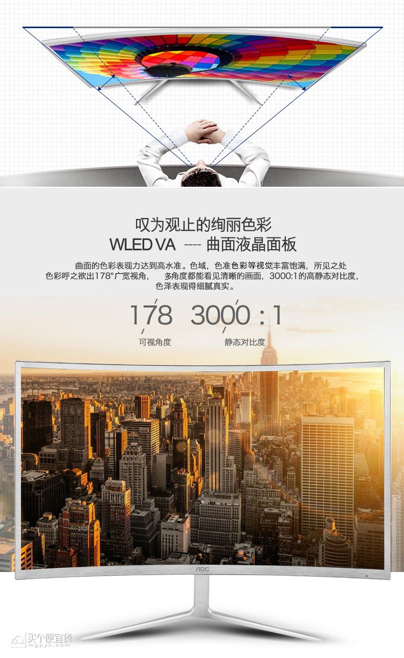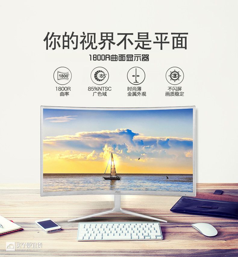 此外,广色域也是一个看点,达到了85% NTSC色域。外观方面,金属质感,窄边框设计,此外边框厚度方向只有7.8mm。不过扩展方面仅有DVI和VGA接口,缺少HDMI和DP,适合喜欢曲面包裹感、不常玩FPS游戏的用户。