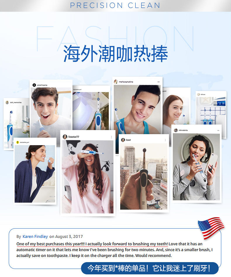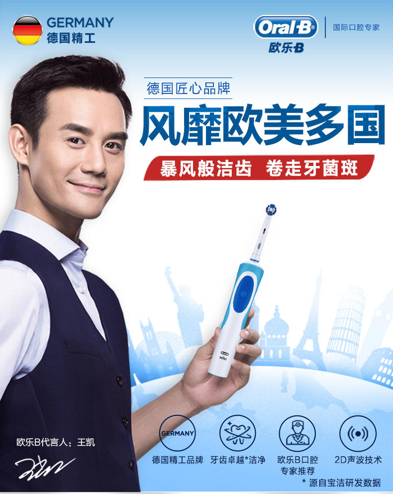 oral-B欧乐B电动牙刷D12,刷头每分钟旋转7600次左右,可以轻松把牙菌斑快速清除,比手动牙刷清洁牙菌斑至少高2倍以上。刷毛柔软,有效地清洁每颗牙齿。手柄防水全密封设计,采用无金属接触点外露的感应式充电原理,能放心在浴室及其它潮湿环境下使用。
