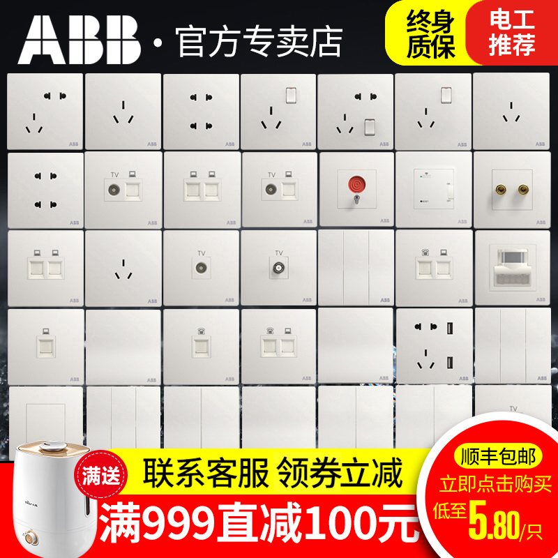 ABB 轩致系列 AF205 五孔插座 雅典白 10件 包邮(需用券,合11.3元/件) 113元