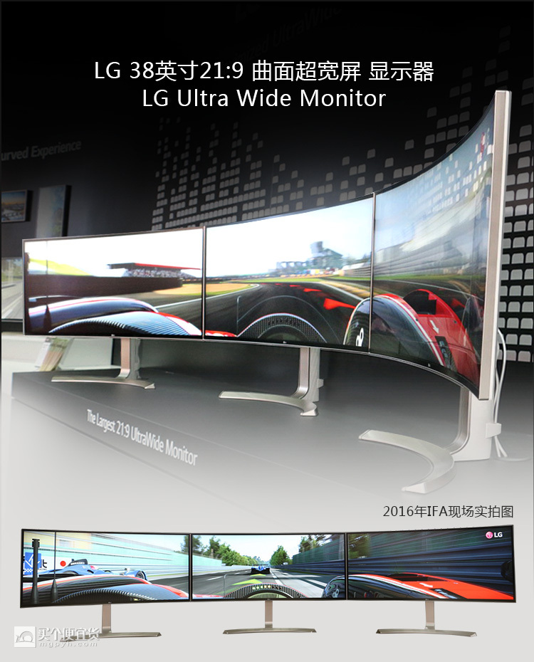LG 38UC99-W是一款罕见的使用38英寸屏幕的21:9比例显示器,属于同时期市售产品中最大的“带鱼屏”。使用的应是自家AH-IPS面板,物理分辨率3840×1600,水平像素达到了4K水准。屏幕曲率2300R实现了不错的环绕效果,色彩深度10bit,通过8bit+FRC实现10.7亿色。屏幕最大亮度300cd/m2,静态对比度1000:1,LED背光源能够覆盖99%以上的sRGB色域。
