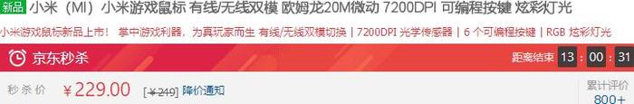 小米有线/无线双模游戏鼠标目前京东商城售价229元包邮,近期好价,同款官网249元在售,喜欢可入~