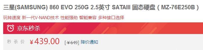 三星850 EVO 250G SATA3固态硬盘,原价649元,目前京东特价439元包邮,价格不错,喜欢的朋友不要错过机会。
