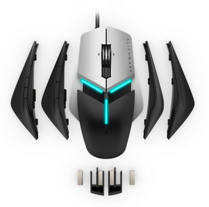 此款AW958鼠标使用PixArt PMW 3360光学传感器,提供12000DPI和250IPS,可以进行5档DPI飞敏设置。鼠标采用欧姆龙50M微动,点击寿命约5000万次,支持自定义AlienFX动态灯效,可以与游戏进行联动,拥有可编程按键。鼠标采用模块化设计,拥有2套可更换外翼,3档可调拱形掌托,4级自定义配重调节,玩家可根据需要自定义鼠标手感。