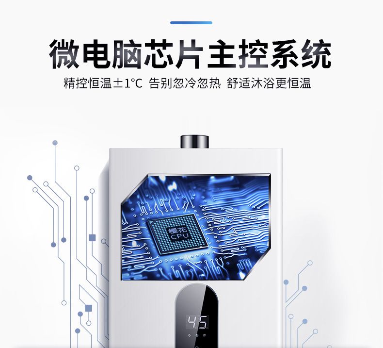 智能“故障自检”,多重安全防护系统,能从多方面实时监控,在危险前及时预警,具备自动熄火保护、稳压保护、漏电保护、强制强抽燃烧保护、超时使用安全装置、过热保护等,保障用水安全。