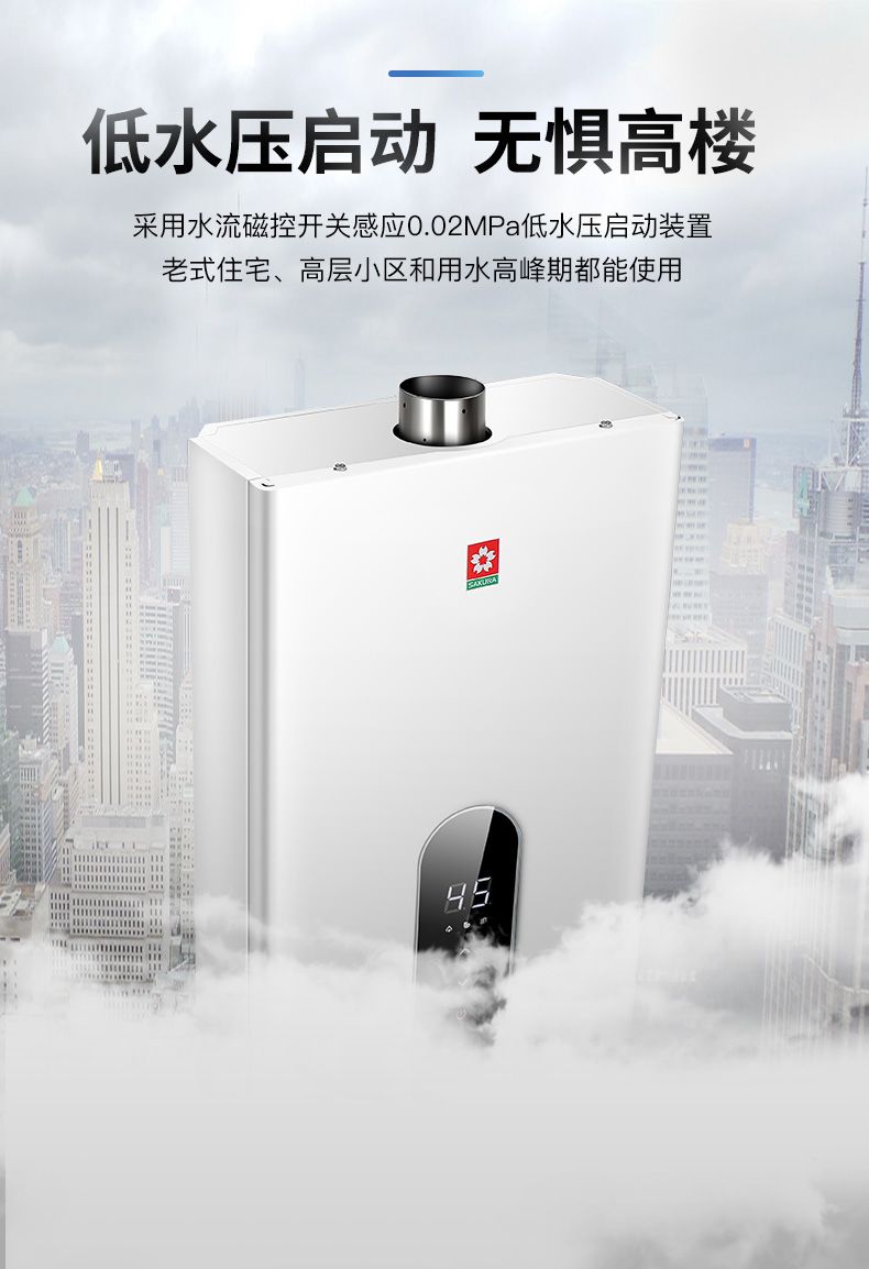 樱花 强排式燃气热水器 13L 免水压 智能故障自检 9日0点抢 限前300件下单半价 999元