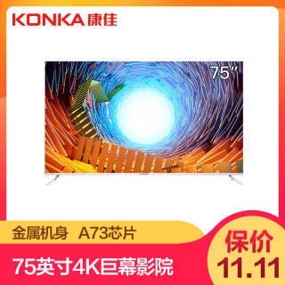 康佳 E75U 75英寸 4K 液晶电视是康佳2018年新品,外观设计方面,采用了时下流行的金属窄边框设计,提供了更好的视觉效果。画质上,其采用分辨率达到3840x2160的4K屏,原生支持HDR硬解。性能上,搭配1.5GB RAM+8GB ROM的存储组合,保证系统流畅运行。运行易柚系统,内置百度语音,支持语音交互功能。端口方面,USB2.0接口,USB3.0接口,HDMI2.0接口,支持蓝牙,支持WIFI连接。整机尺寸1682x285x1028mm,支持壁挂。