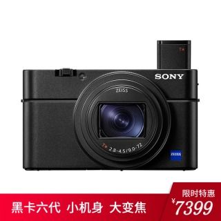 到手价7399索尼全新旗舰 黑卡6代-小机身、大变焦 1、24-200mm大变焦镜头 2、约2010万有效像素 3、约0.03秒高速对焦 4、高速连拍 连拍张数约达233张 5、光学防抖 触摸对焦