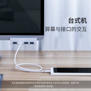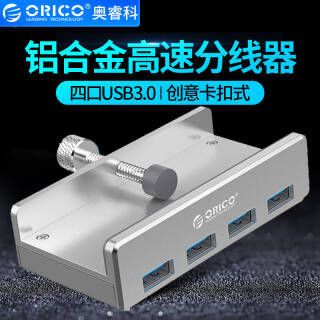奥睿科(ORICO)USB3.0分线器多功能扩展hub集线器 铝合金卡扣式MAC苹果笔记本显示器通用 银MH4PU