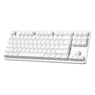 京造机械键盘采用87键布局,搭载Cherry原厂的MX红轴,2mm键程,线性触感无段落,提供5000万次敲击寿命。大键为卫星轴,键帽为ABS材质,双色注塑印刷。前盖为阳极化铝合金材质,接口为Type-C支持键线分离,白色背光。