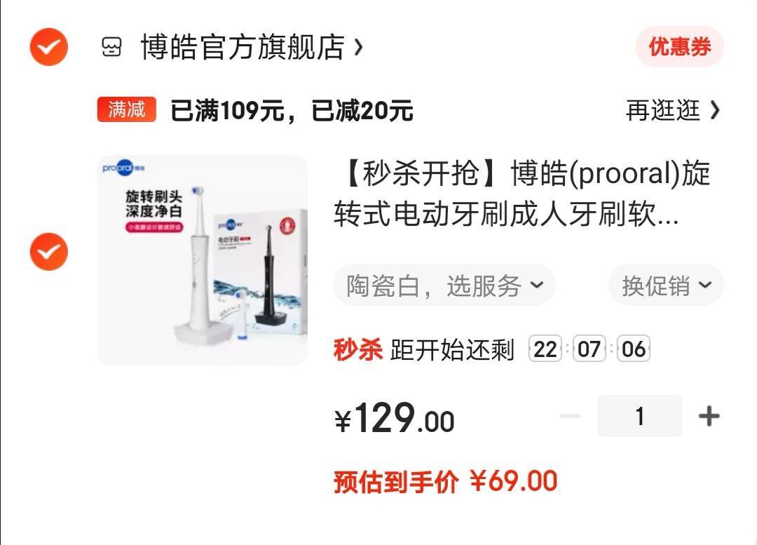 现售价129元,领取40元优惠券,叠加店铺满109-20元优惠活动,下单到手69元包邮,有需要的朋友可以关注