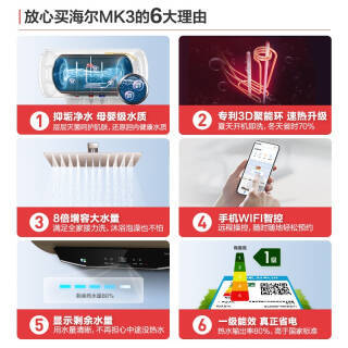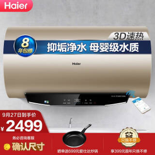 海尔(Haier)80升电热水器3D速热智能APP遥控预约内胆自检一级能效母婴级净水洗EC 2499元(需用券)
