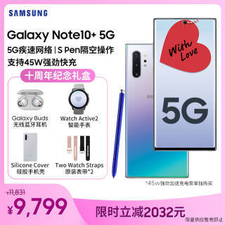 三星 Galaxy Note10 5G手机(N9760) 骁龙855 智能S Pen 12GB 256GB 麦昆黑 双卡双待 9499元