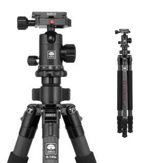 R1204+G10X三脚架材质为碳纤维,四节,自重1.03kg,收纳高度为585mm,最低高度为465mm,不升中轴1390mm,最大高度为1680mm,最高负重10kg,但不可反折,中轴倒置也算是个遗憾。另外搭配的G10X云台球体直径为29mm,云台高度为88mm,自重0.3kg,最大负重18kg。