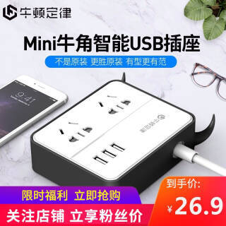 牛顿定律插座USB插排排插/插线板/接线板桌面插座充电创意支架NTT-2A3U 2口USB3-骑士黑 26.9元