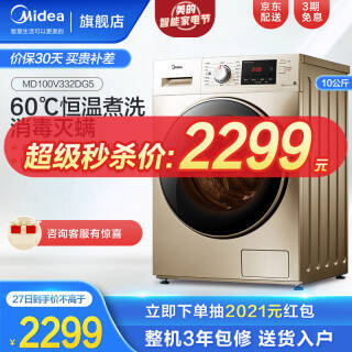 Midea 美的 简尚系列 MD100V332DG5 洗烘一体机 变频 10KG 金色 2299元