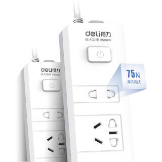 deli 得力 18276-02 插线板 2位2米 总控开关 13.52元(需买2件,共27.04元)