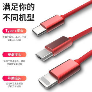 【京东】铭爵狐 三合一数据线苹果安卓Type-C手机充电线iPhone11一拖三通用数据线 苹果安卓华为Type-c伸缩三合一(1米)中国红------------------------京东价:29.9元券后价:8.9元