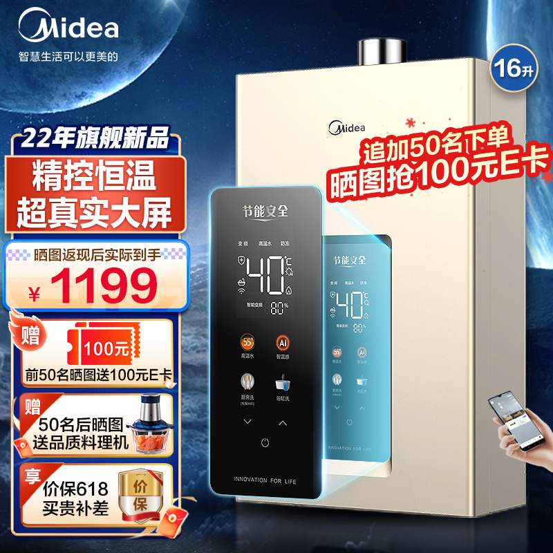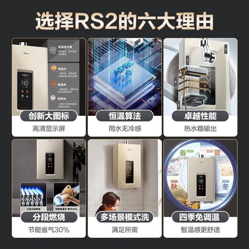 PLUS会员:Midea 美的 JSQ30-RS2 燃气热水器 16L 1039元包邮(晒单赠品折现100元,双重优惠)