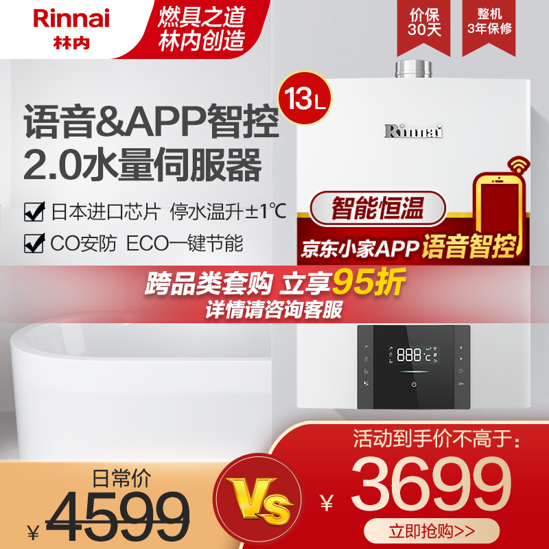 Rinnai 林内 RUS-13QD06W 燃气热水器 13L 3449元