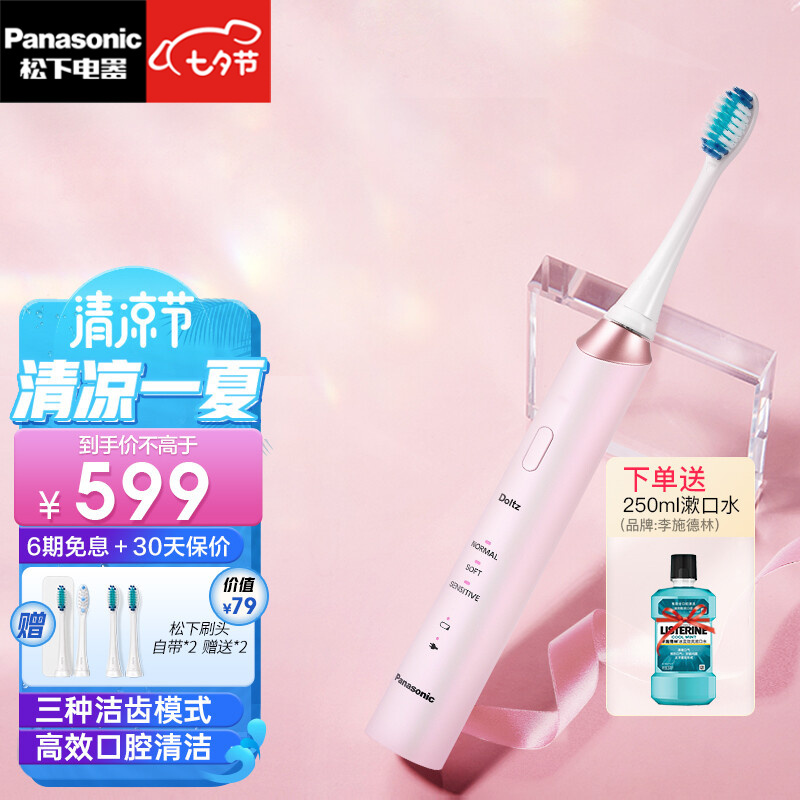 PLUS会员:Panasonic 松下 小光环系列 EW-DC12-P405 电动牙刷 粉色 439元包邮(双重优惠)