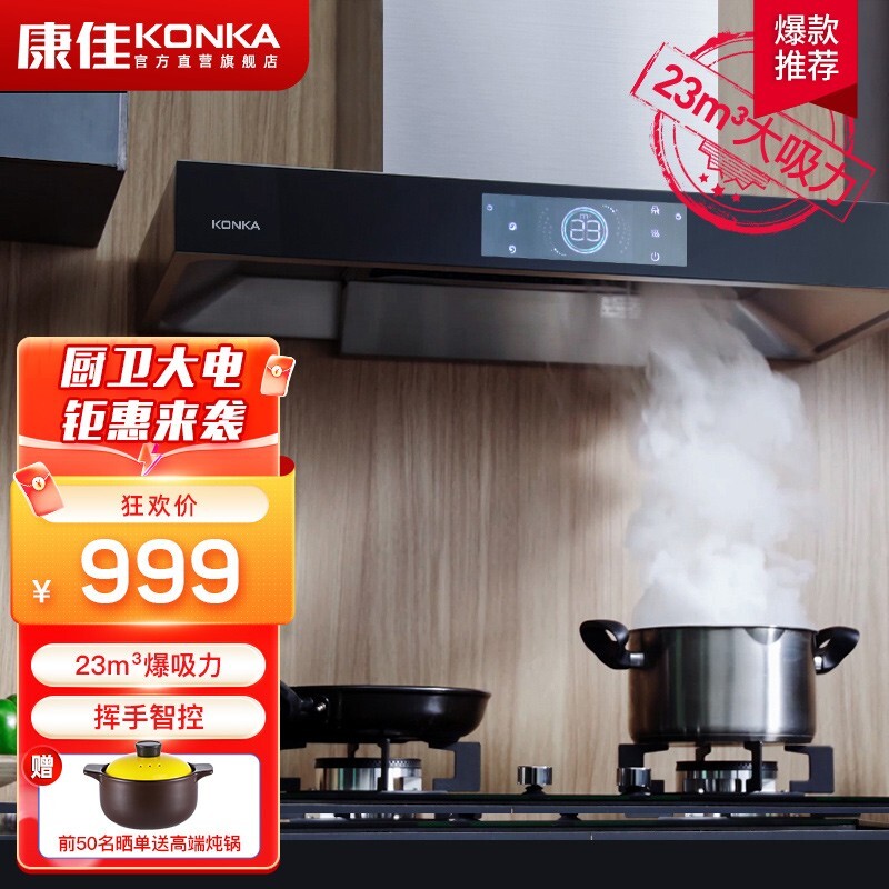 PLUS会员:KONKA 康佳 CXW-268-KT59 顶吸式吸油烟机 859元包邮(双重优惠)