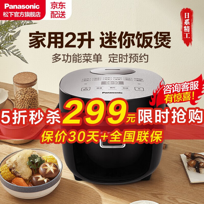 PLUS会员:Panasonic 松下 SR-DB071-K 电饭煲 2L 黑色 229元包邮(晒单返10元,双重优惠)